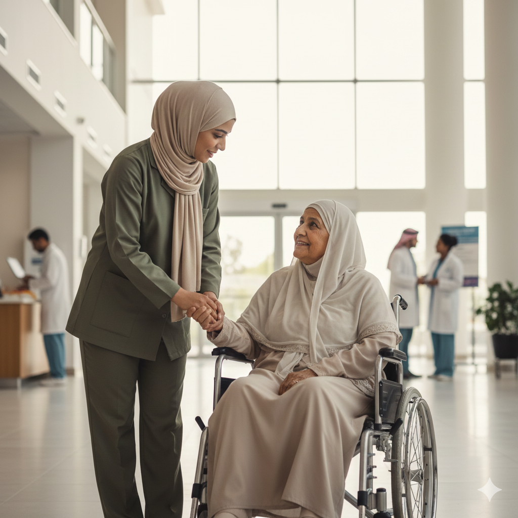 دليل عملي يساعد الأسر في اختيار الشخص المناسب لمرافقة المريض أثناء المواعيد الطبية أو العمليات.